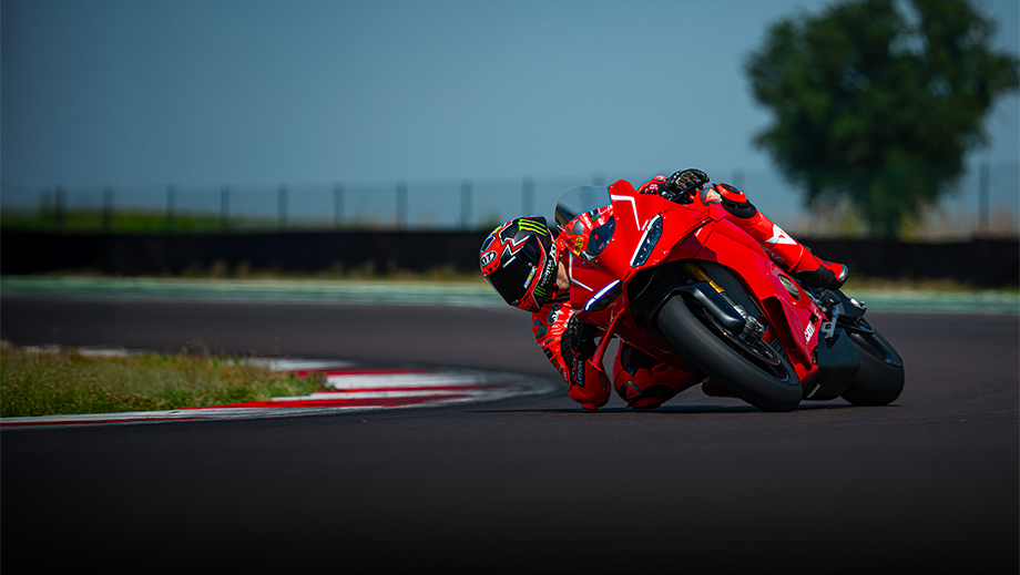 Track action of a Ducati Red Ducati Panigale V4 R